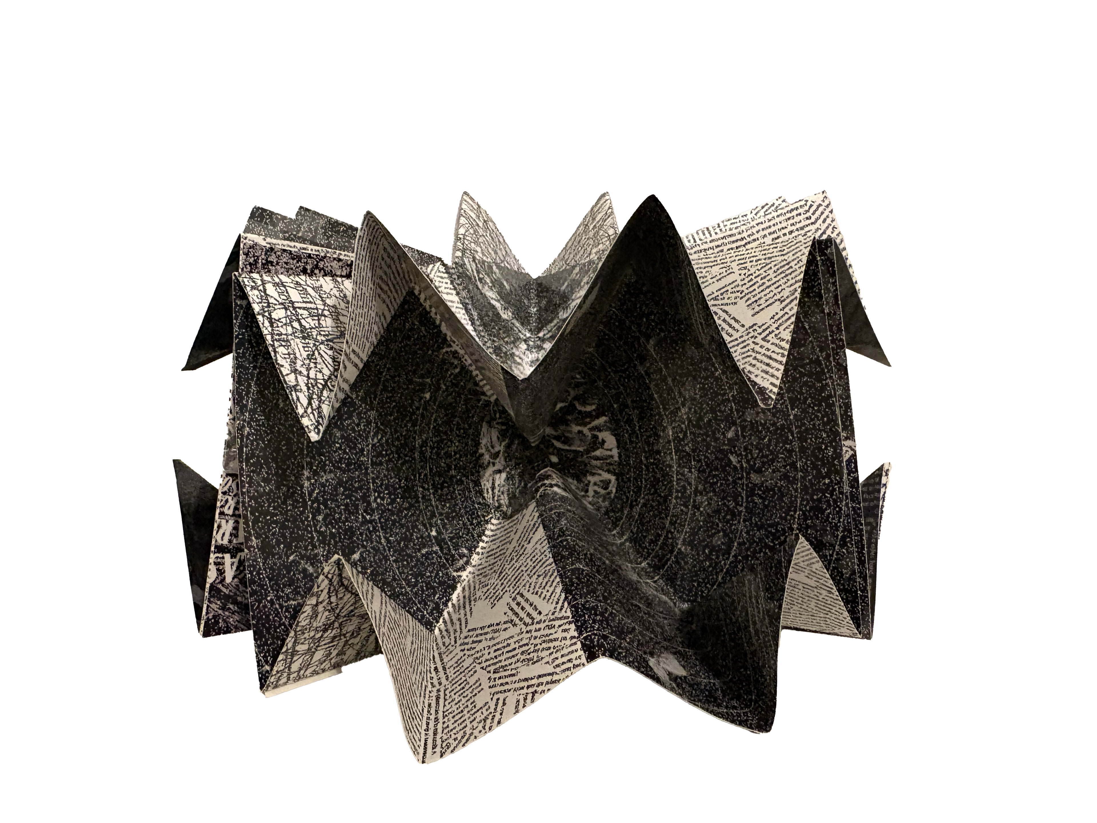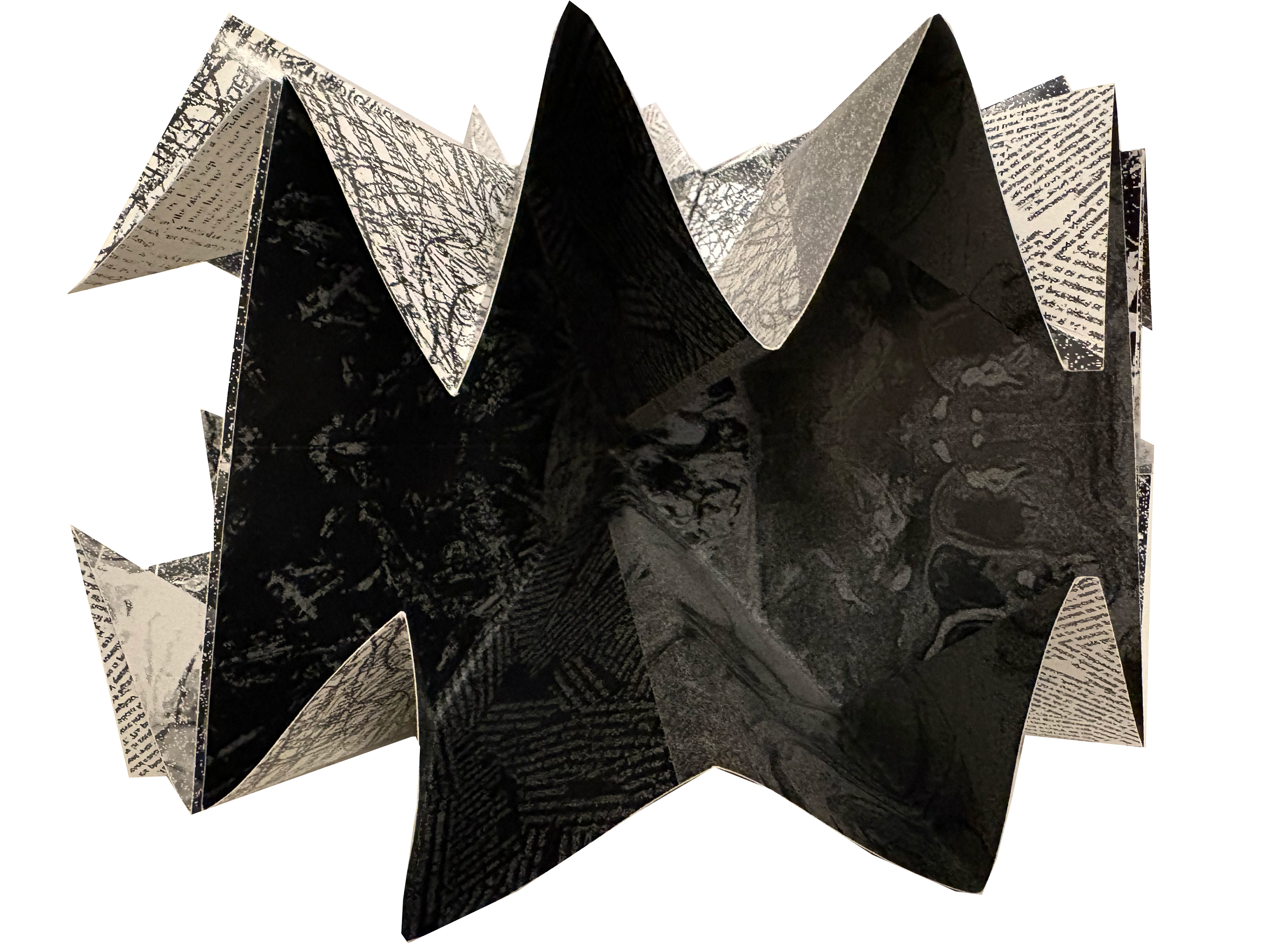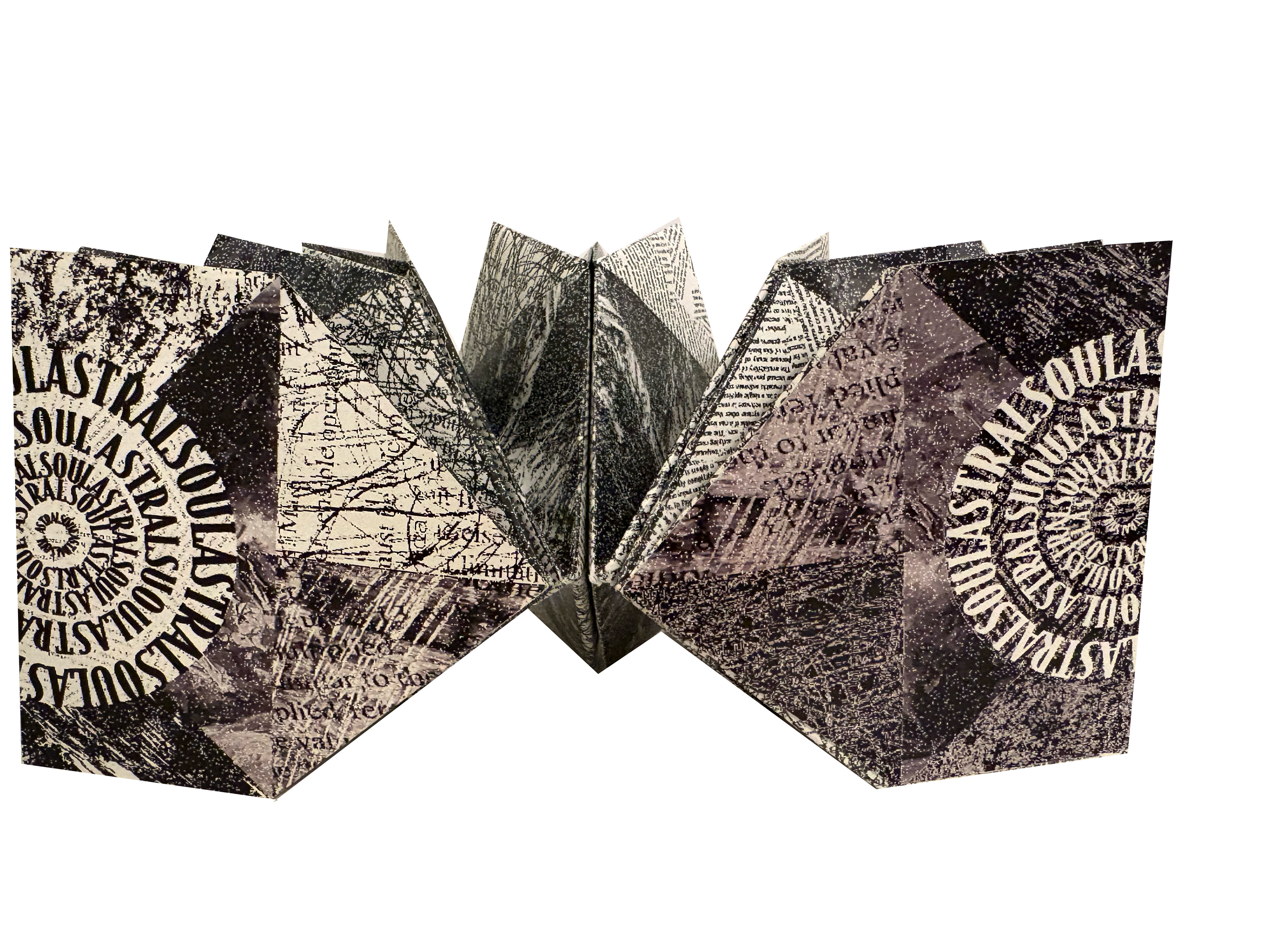 The accordion book communicates the superstition of the moon taking ones soul. The aim of this fictional project was to represent an object and connect it to a related concept. Also had to reflect on the idea through form and visual communications. The notion was further established with multiple Turkish map folds extending and connecting to portray a round, rotating structure and the mechanics of engulfing something. The astral like graphics which is a combination of handmade mediums embedded into the books folds, represent the mysterious undertones of the moons, it's characteristics and the circulation and movement of souls in it's composition.